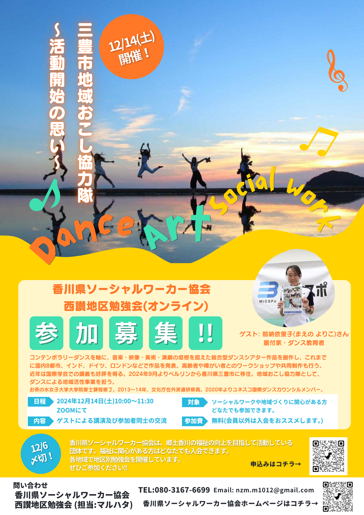 - 2024.12.14(土)10:00~ 西讃地区勉強会~三豊市地域おこし協力隊~活動開始の思い~ ZOOMによるオンライン開催です。(終了)