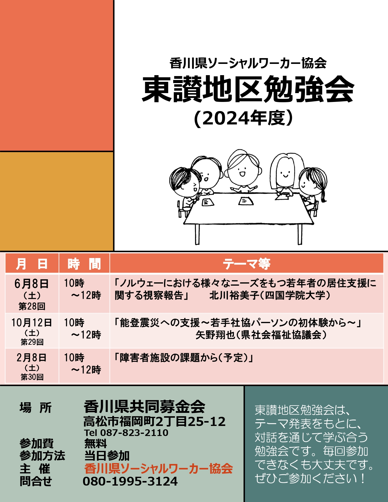 - 2024.10.26(土)10:00~ 東讃地区勉強会~能登震災への支援~若手社協パーソンの体験からへご参加ください。(終了)