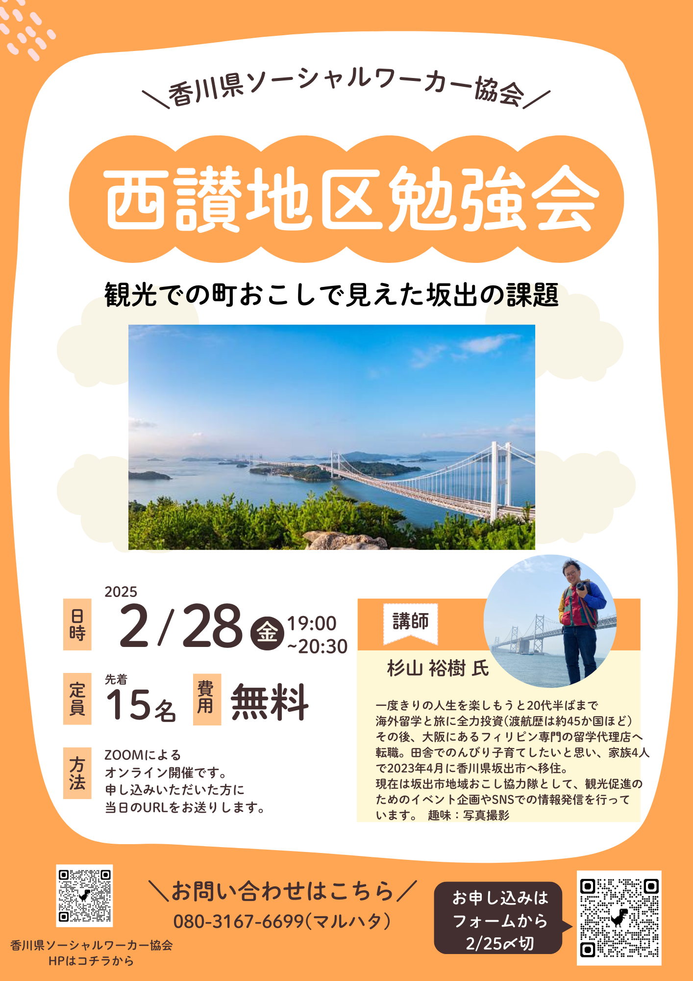 - 2025.2.28(金)19:30~20:30 西讃地区勉強会観光での町おこしで見えた坂出の課題(終了)