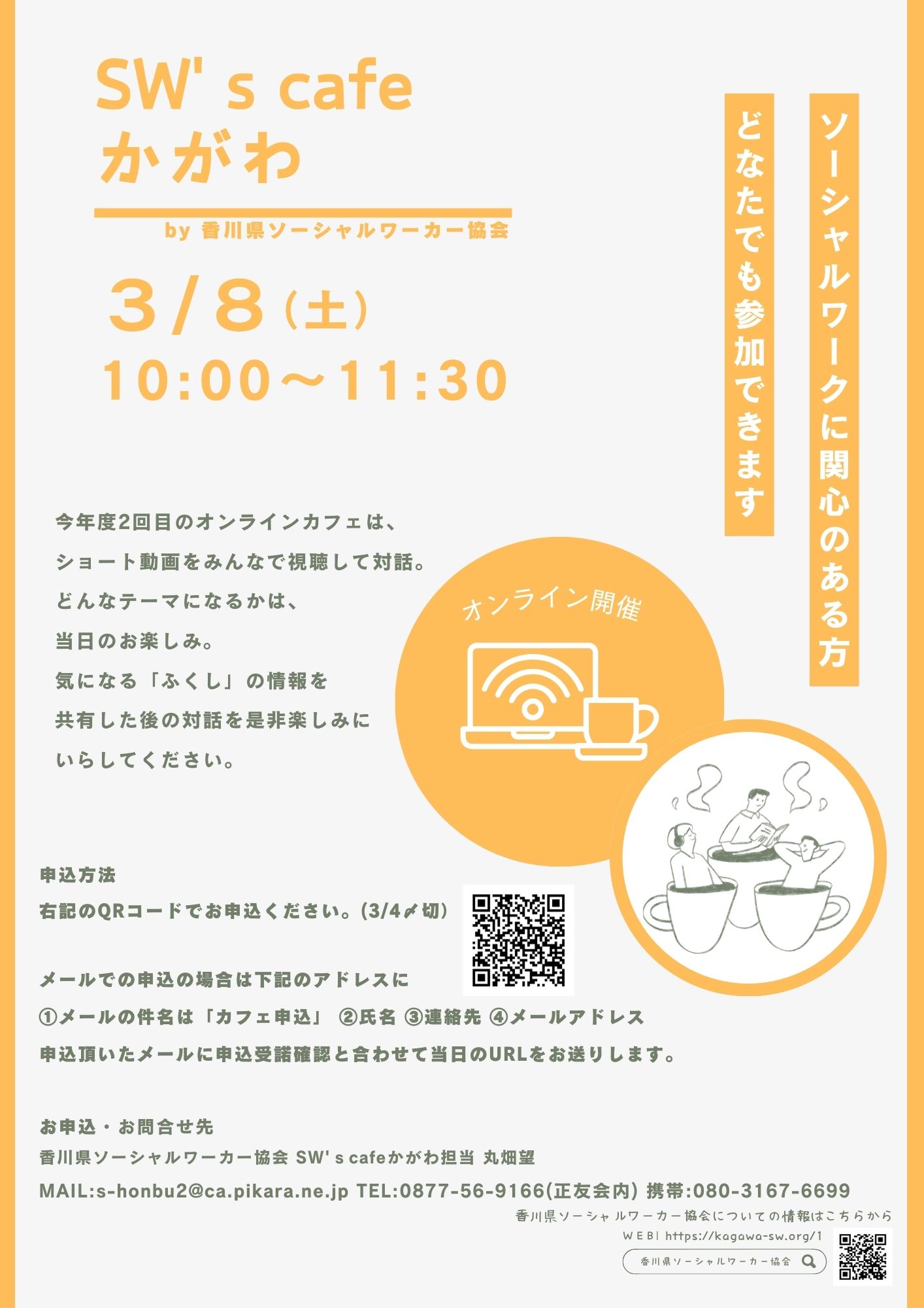 - 2025.3.8(土)10:00~11:30 SW's caféかがわ ショート動画をみんなで視聴し対話…(終了)